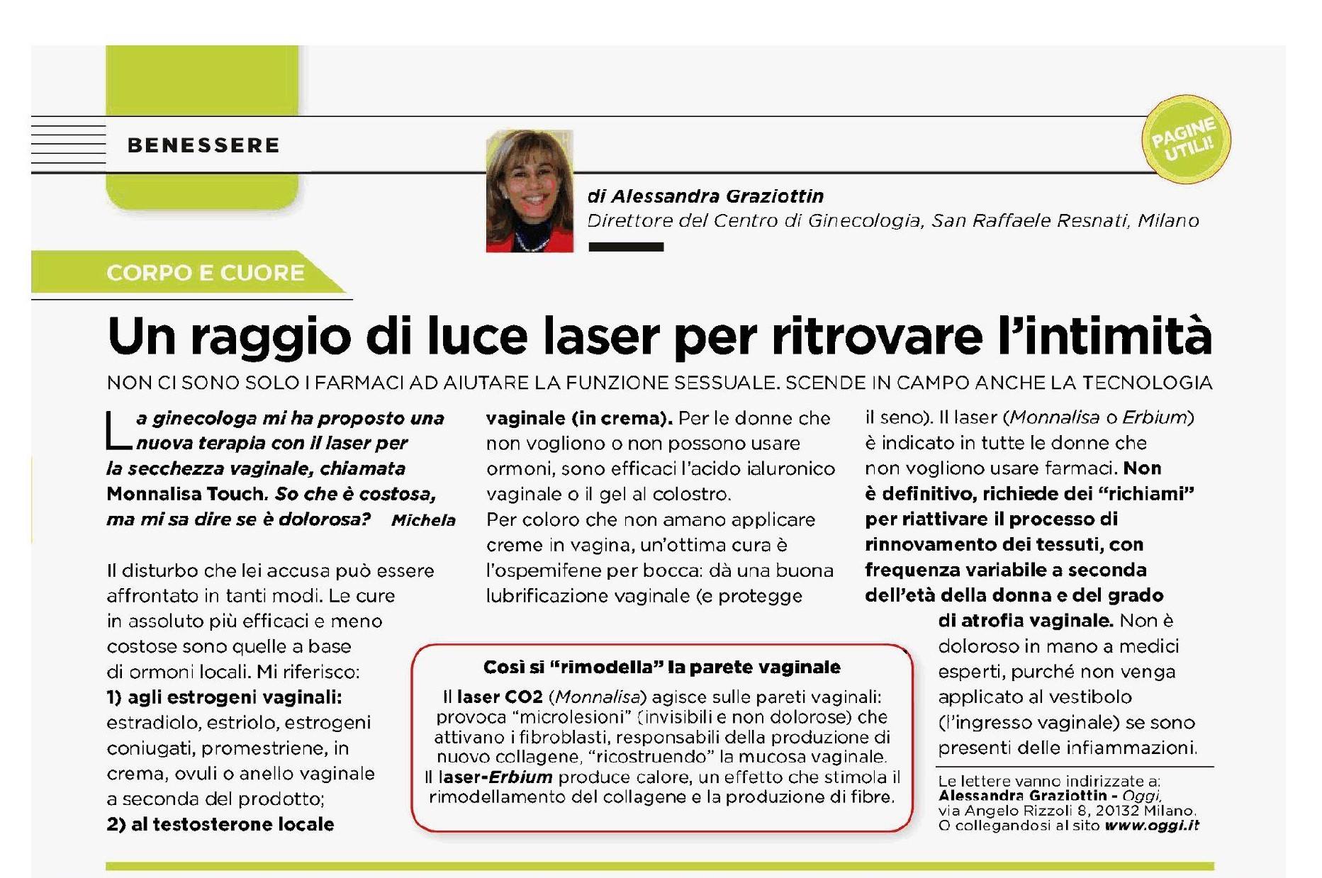 Si parla di Monnalisa Touch nell’articolo ‘Un raggio di luce laser per ritrovare l’intimità’ sul numero di OGGI del 12 maggio 2016 a cura di Alessandra Graziottin, Direttore del Centro di Ginecologia, San Raffaele Resnati di Milano